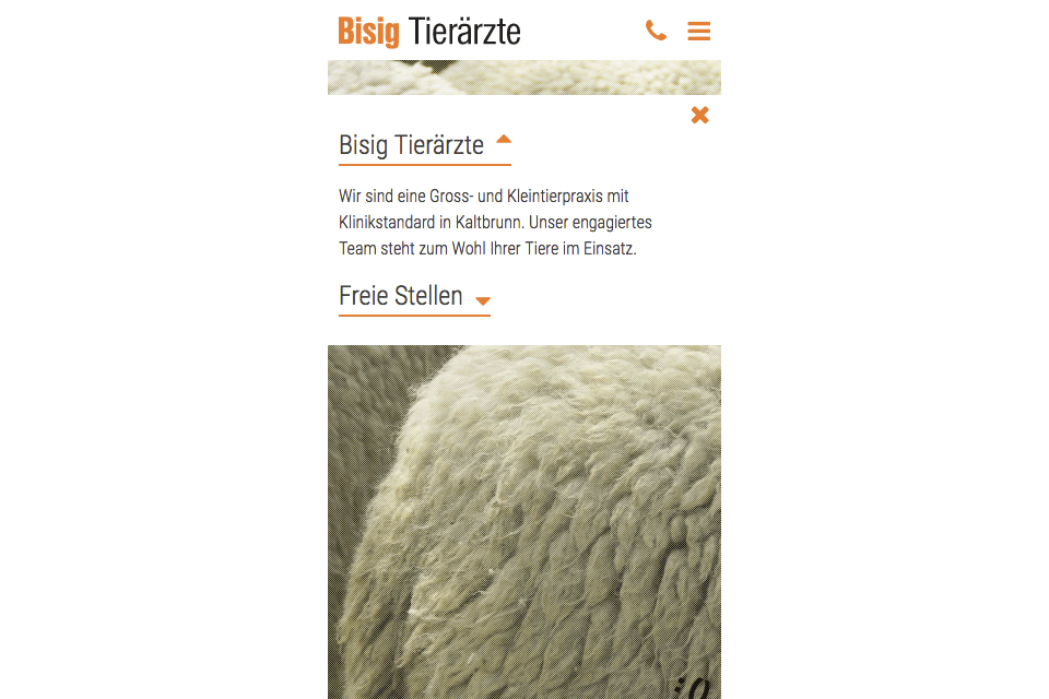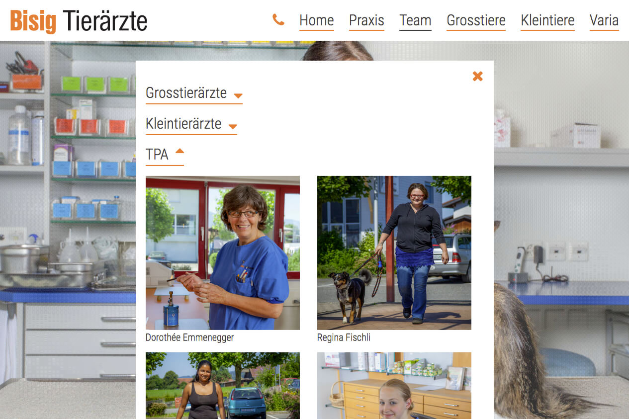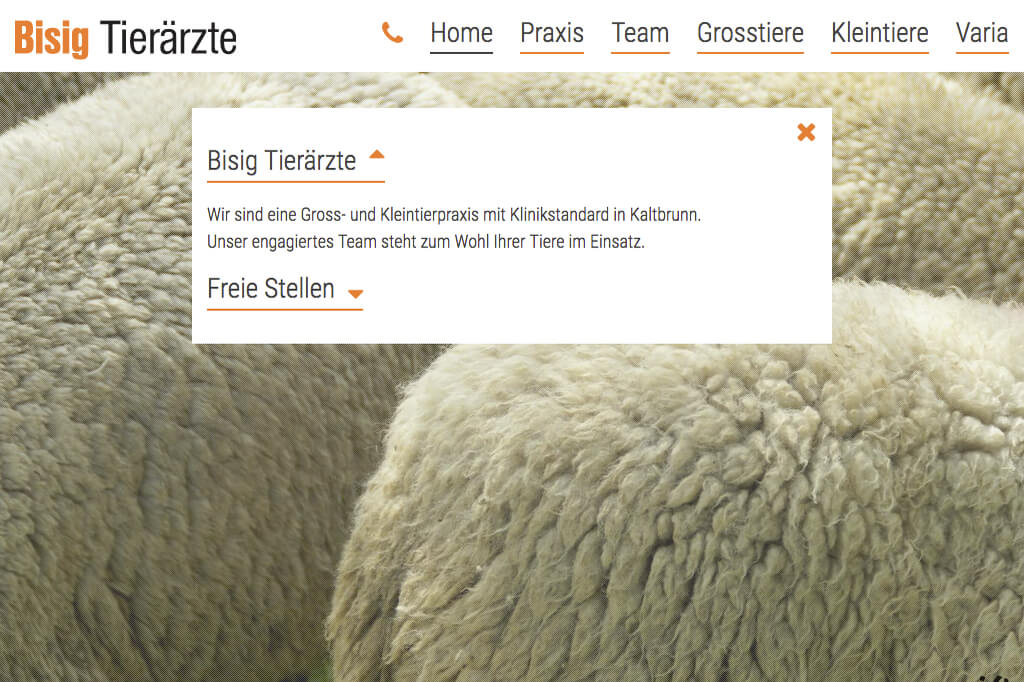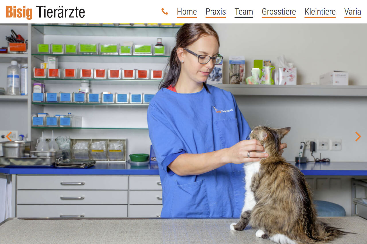 Erster Internetauftritt für Bisig Tierärzte AG, Tierklinik für Gross- und Kleintiere zwischen Zürich und Chur.