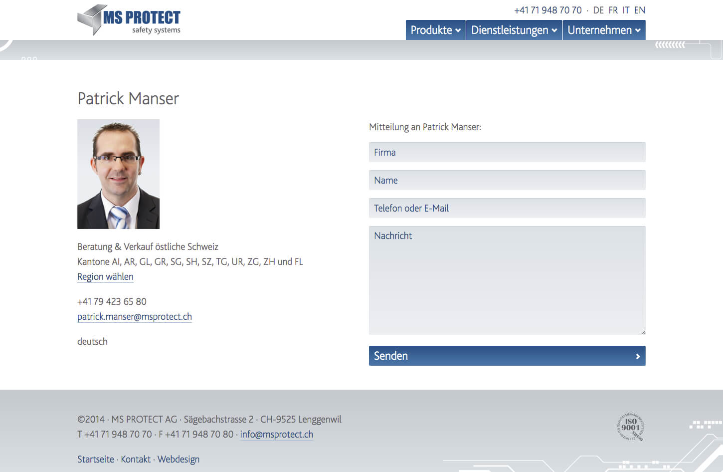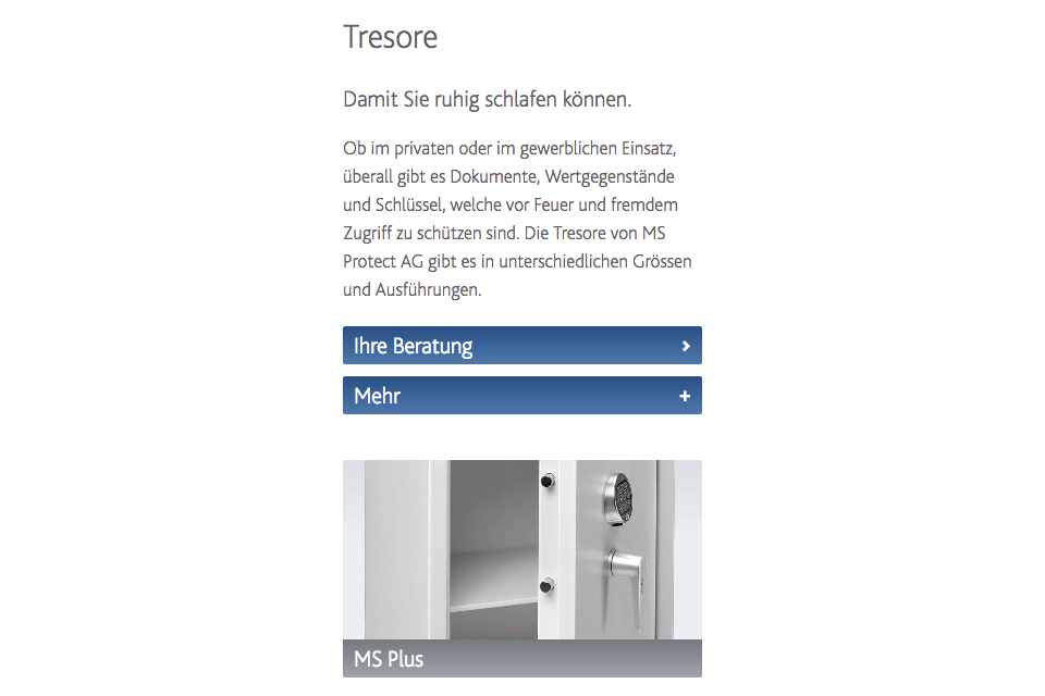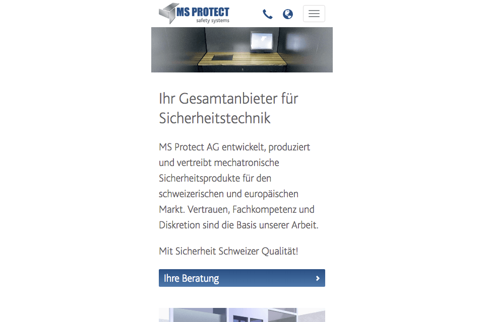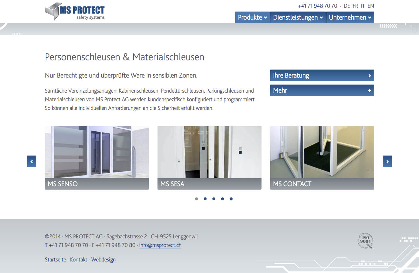 Klassische Firmen-Website für MS Protect AG, mechatronische Sicherheitssysteme aus der Schweiz.